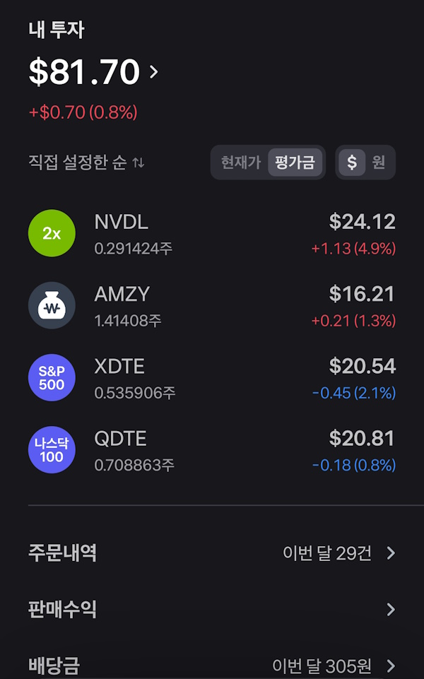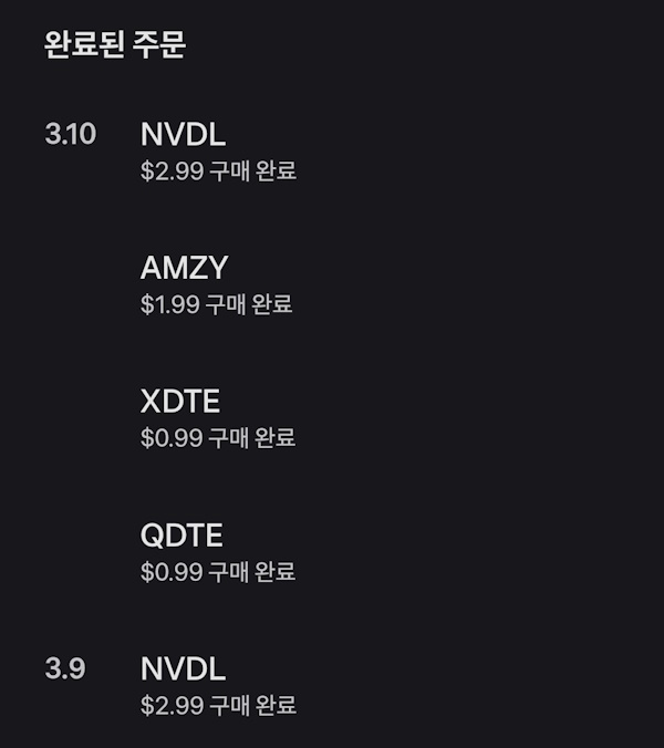 - 종목 : NVDL 3, AMZY 2, XDTE 1, QDTE 1