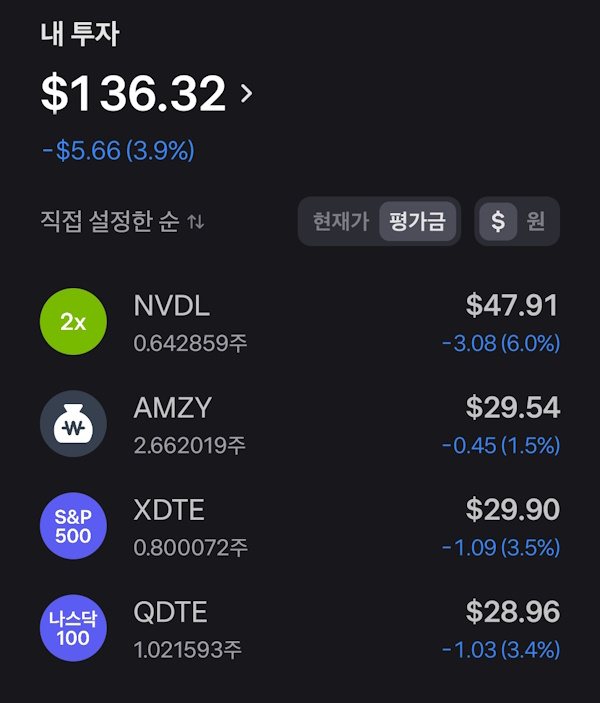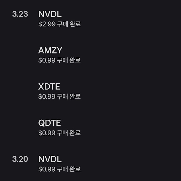 - 종목 : NVDL 3, AMZY 1, XDTE 1, QDTE 1
