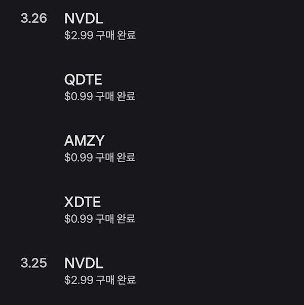 - 종목 : NVDL 3, AMZY 1, XDTE 1, QDTE 1